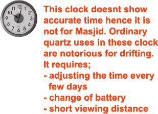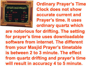 99% clock presently installed at Masjid are not accurate. To prove this, take 2 clocks at any Masjid and compare the time. It will definately shows different time after few minute. The question is which clock shows the correct time?. How was the clock calibrated?. When was the last time the clock hand adjusted?.