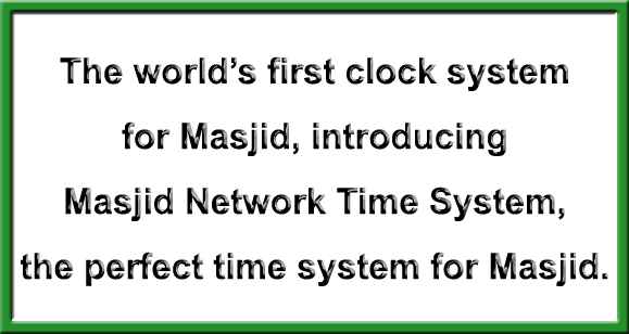 Masjid Network Time System features a complete requirement for Masjid: - very accurate current time, very accurate prayer’s time taken from your own masjid prayer’s timetable, setting of prayer’s time done through local server, fully automatic, no resetting required, long lasting, all components are from the best quality, able to listen to live Athan and preachers from your mosque and get accurate time at home.